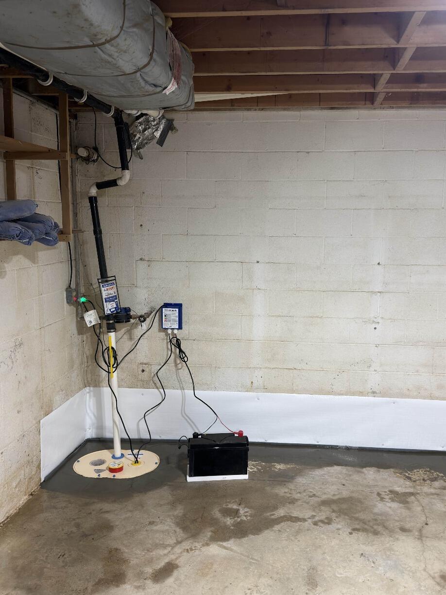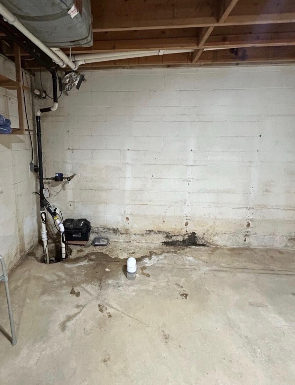 Before Mid-State Basement Systems, this homeowner's sump pump was just an ugly hole in the ground that couldn't keep up with the leaky basement walls. We arrived on the scene to waterproof the walls with WaterGuard and install our TripleSafe sump pump system to keep the basement dry for good!