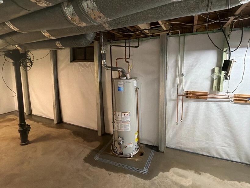 Our team installed drainage matting and CleanSpace vapor barrier. This super-durable, 20mil plastic sheet material is designed to permanently prevent moisture, outside air, and pests from getting into your crawl space.