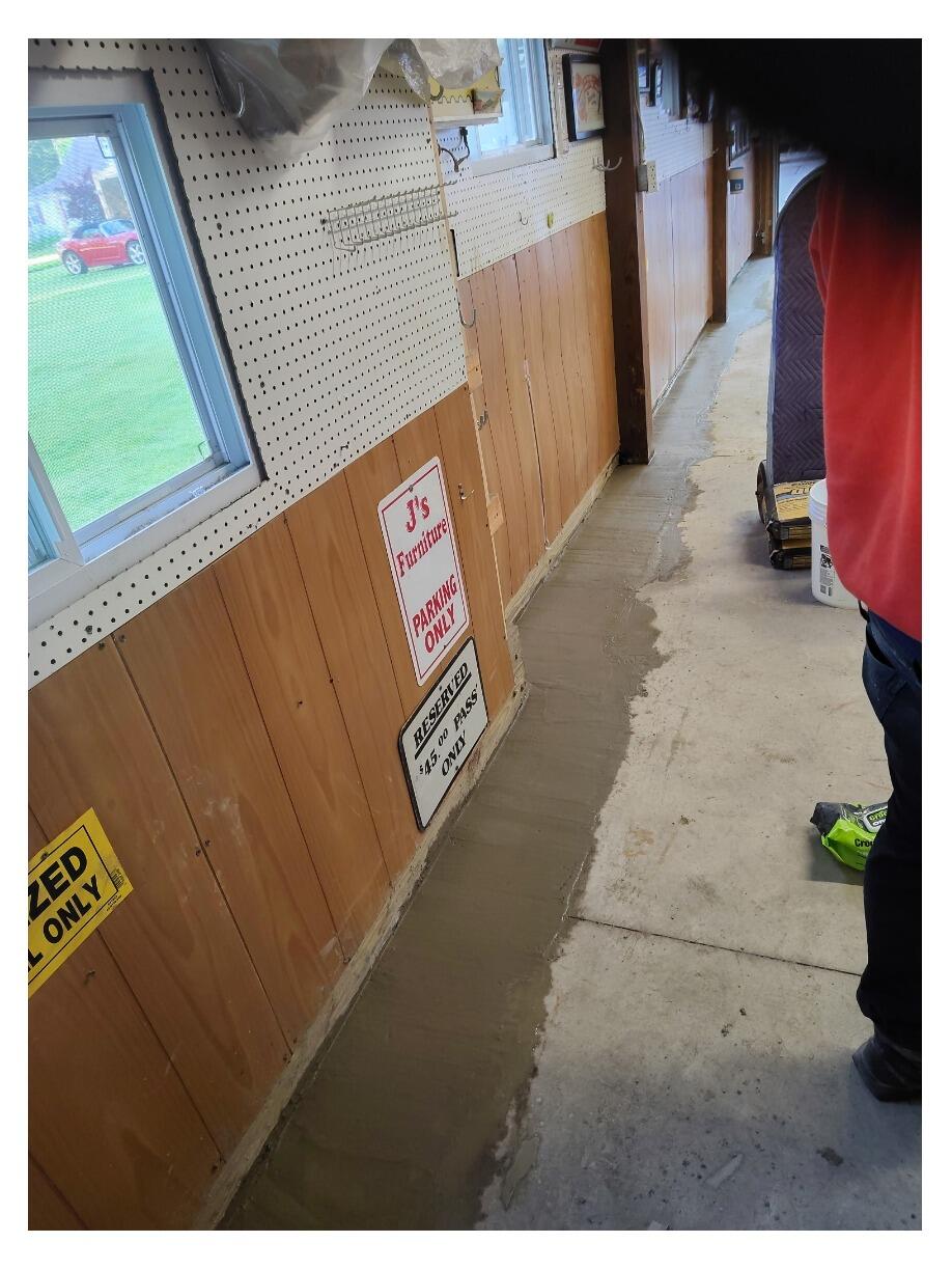 We fixed a very annoying flooding problem in this garage gym by installing the WaterGuard drainage channel. This patented product sits flush against the floor and wall in order to catch water and drain into the sump pump.