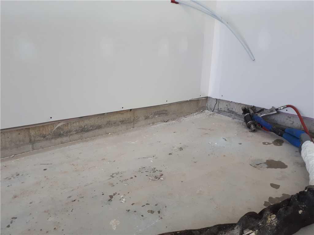Foreman Kyle McKeown started by drilling a few dime-sized holes in the concrete. He used these as injection ports for installing our PolyLevel® high-density polyurethane. PolyLevel® expands beneath the concrete, compressing fill soils and stabilizing the floor above. After completing the repair, Kyle patched the holes with fresh concrete.