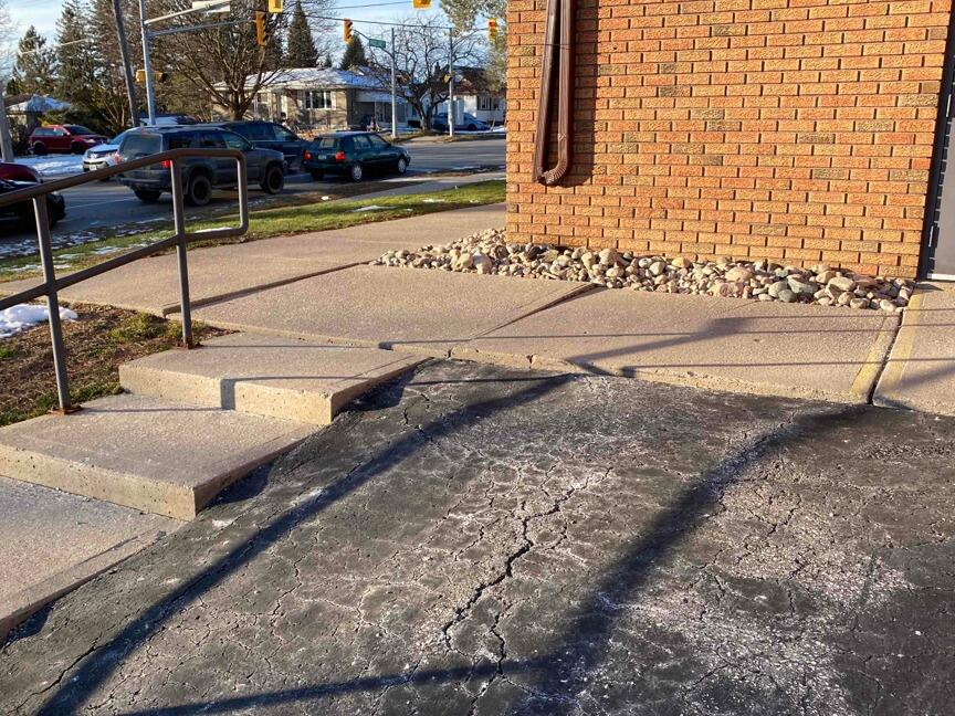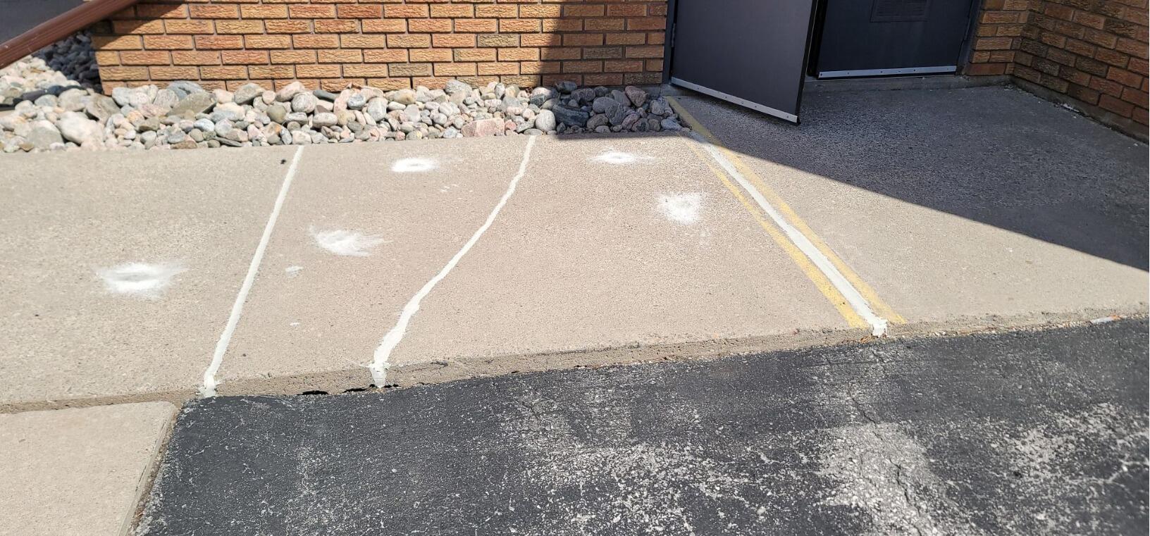 A sinking entrance is more than just an eyesore—it’s a liability. This Lindsay, Ontario business was dealing with significantly settled concrete slabs that had created a dangerous trip hazard right at the front door. The gap was large enough to catch a shoe, making the walk from the parking lot not only inconvenient but unsafe for customers and staff.