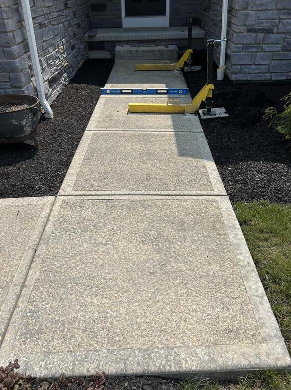 Disheveled walkways can not only diminish your home's curb appeal but pose a safety risk as well. In the before photo, notice the uneven concrete welcoming visitors into a home in Mars, PA – clearly a tripping accident waiting to happen. With our expertise, we used PolyLevel and NexusPro solutions for a transformation as evident in the after photo. Now, the main sidewalk lays even and safe, reflecting the care and pride taken in both home and homeowner experience.