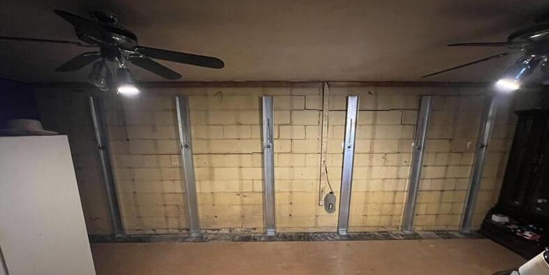 In Grove City, PA, a homeowner faced the problem of their basement wall bowing out, threatening the home's stability. As seen in the before photo, the structural integrity needed urgent attention. We stepped in with our PowerBrace™ System—zinc-plated steel beams custom-fitted and securely anchored—to offer a tried-and-true, lasting solution. Notice in the after photo how the wall now stands strong and stable. Our intervention not only halts further inward movement but also restores comfort and peace of mind. At Keystone Basement Systems, your home's safety is our priority.