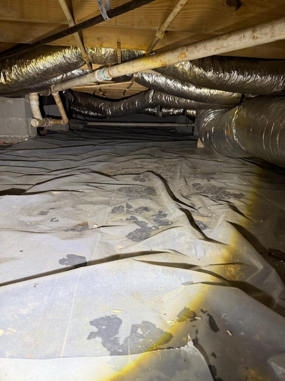 This customer in Huntsville, AL, called Frontier to address moisture issues in their crawl space. To manage the moisture issues, we installed our drainage matting, a CleanSpace liner, sealed the crawl space vents, and installed our SaniDry Sedona dehumidifier.