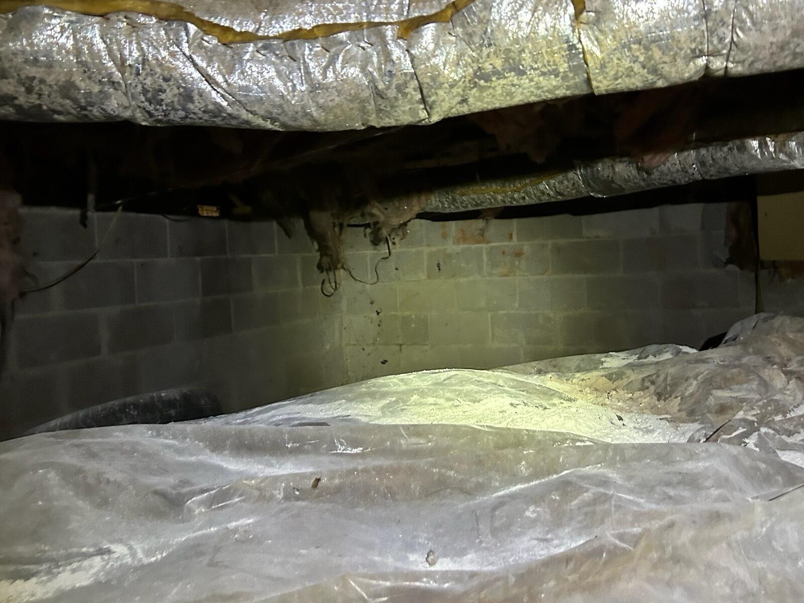 In Hixson, TN, this crawl space was damp, cluttered, and filled with failing insulation. The exposed block walls and debris created ongoing moisture issues and poor air quality inside the home.