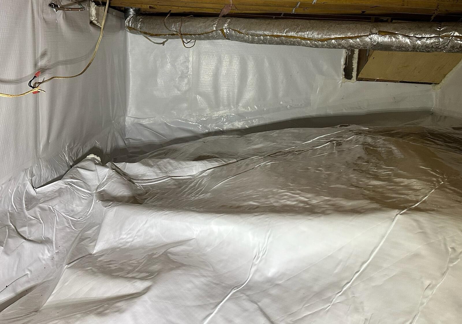 Our team installed the CleanSpace® vapor barrier system, a durable liner that seals off the ground and walls from outside moisture. This bright, reinforced material not only improves the look of the crawl space but also provides lasting protection against mold and humidity. The result is a clean, dry, and energy-efficient space that contributes to a healthier home overall.