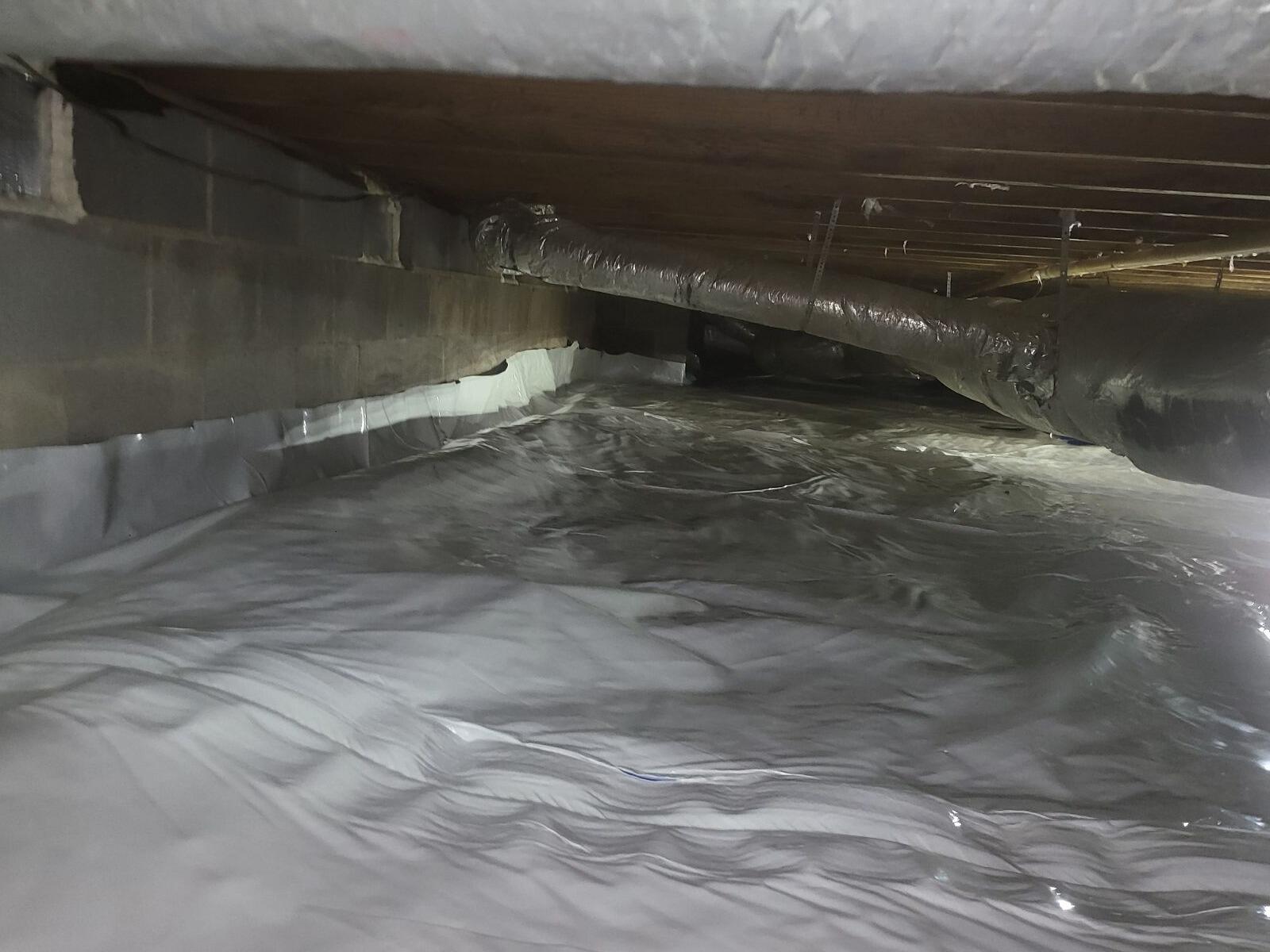 This crawlspace was dirty, wet, and in desperate need of encapsulation, so Master Services installed our CleanSpace® Crawl Space Vapor Barrier. Not only does the liner protect against moisture and mold, but it comes with a 25-year warranty against tears!