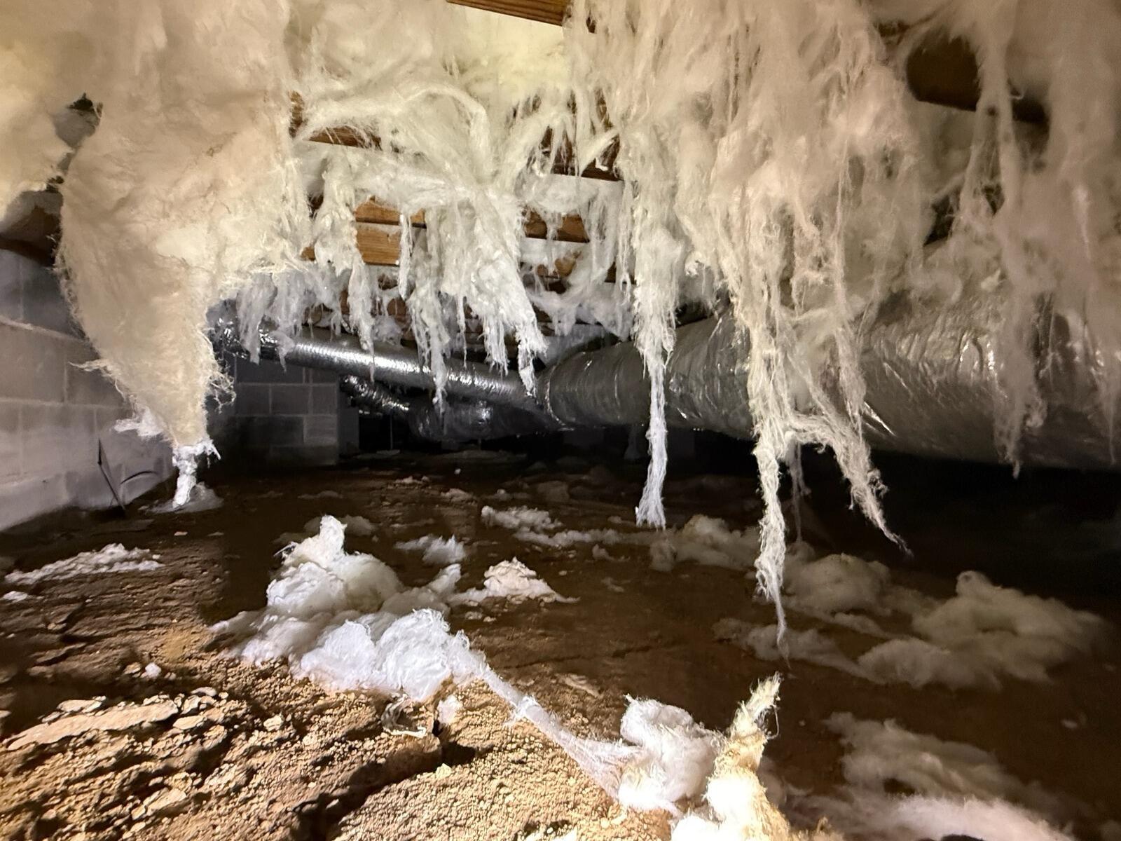 This crawlspace was full of debris, fallen insulation, and other nastiness. Master Services installed our CleanSpace® Crawl Space Vapor Barrier to keep the area dry, clean, and free of clutter.