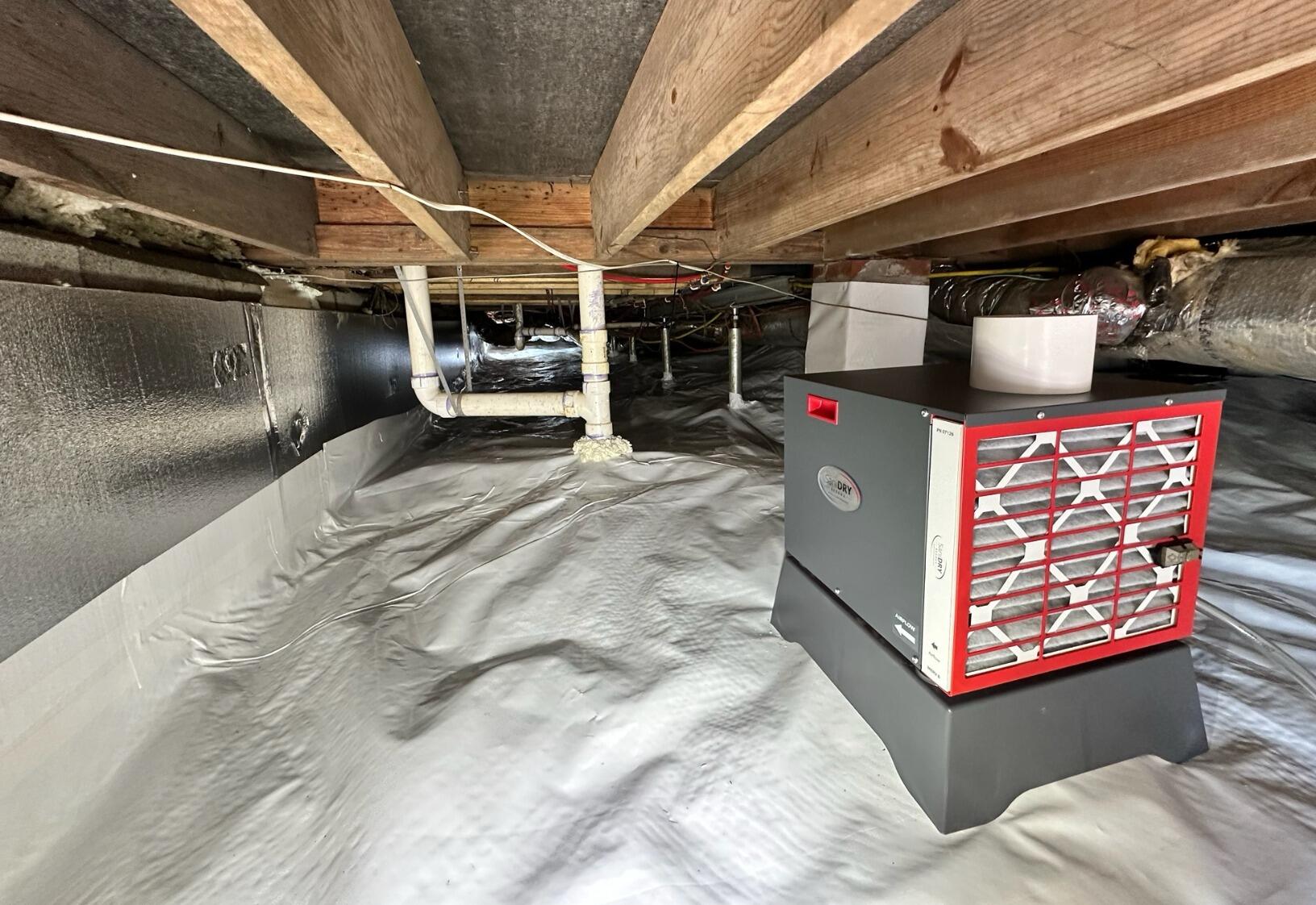 Our team completely transformed the area by installing CleanSpace throughout the crawl space to protect it from moisture and the elements. To fix the drafts and improve comfort, we added SilverGlo insulation to seal cracks and openings. We also installed a SaniDry Sedona dehumidifier with a condensate pump to keep humidity at a level where mold cannot grow. Finally, a TripleSafe sump pump system was added for dependable water removal.
