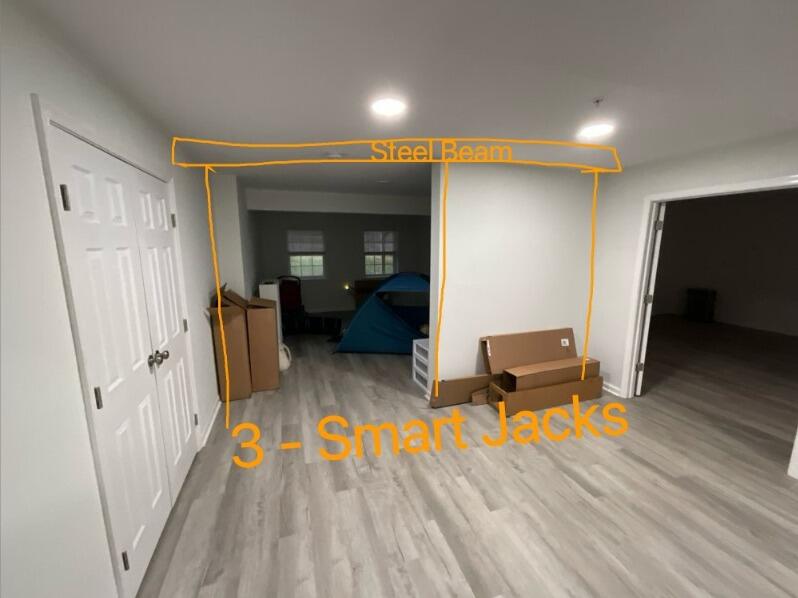 In a newer, two-year-old home in Aquasco, MD, the owner was alarmed to find cracks developing throughout the property—a clear sign of a serious problem. Concerned about potential foundation settlement, they called NV Waterproofing and Foundation Repair for a free inspection. We discovered that the foundation was indeed settling, causing stress on the upper two floors. To resolve the issue, our team installed a heavy-duty supplemental beam in the basement, secured by three powerful SmartJack XT support posts. This system immediately halted the settlement and provided robust support to the home's structure. Now, the home is permanently stabilized, preventing further cracking and giving the homeowner lasting peace of mind that their investment is secure.