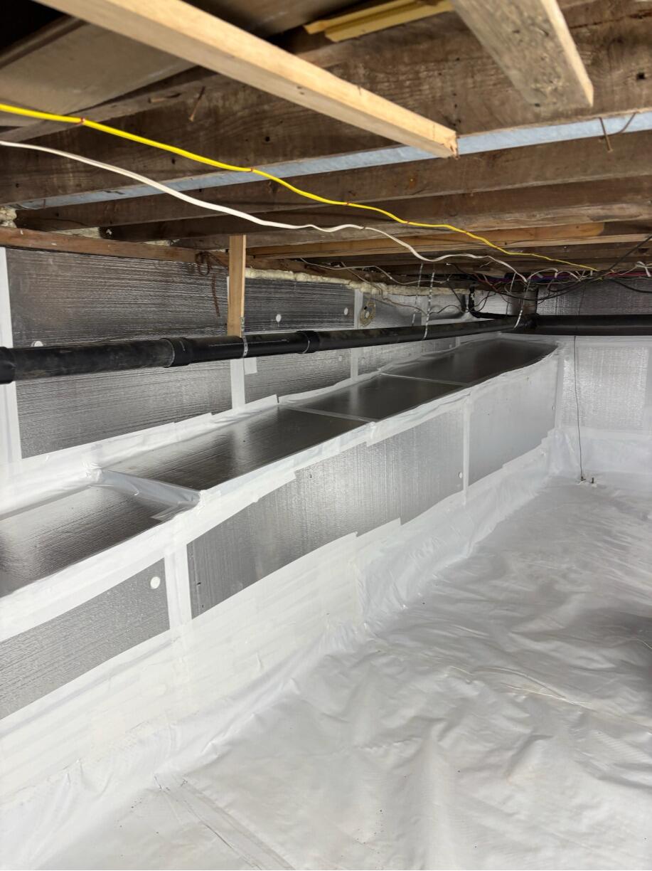These products will work together to ensure that this crawl space will remain clean and dry.
