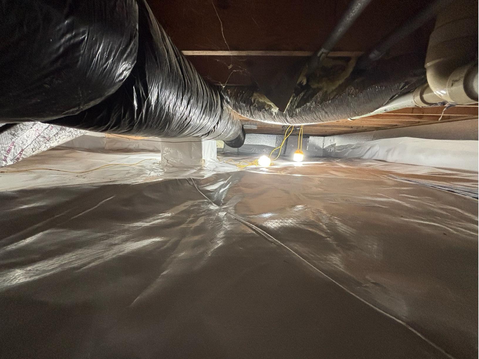 Water in the crawl space was becoming a concern for this Ashland, homeowner. We solved this problem with a CleanSpace Encapsulation. First we insulated the rim joists to ensure moisture and air weren't coming in to the crawl space through there. Then we laid down Drainage Matting on the earth to soften the crawl and help guide surface water out of the crawl space. Finally we installed our CleanSpace Liner to provide a thick and durable vapor barrier in this crawl space.