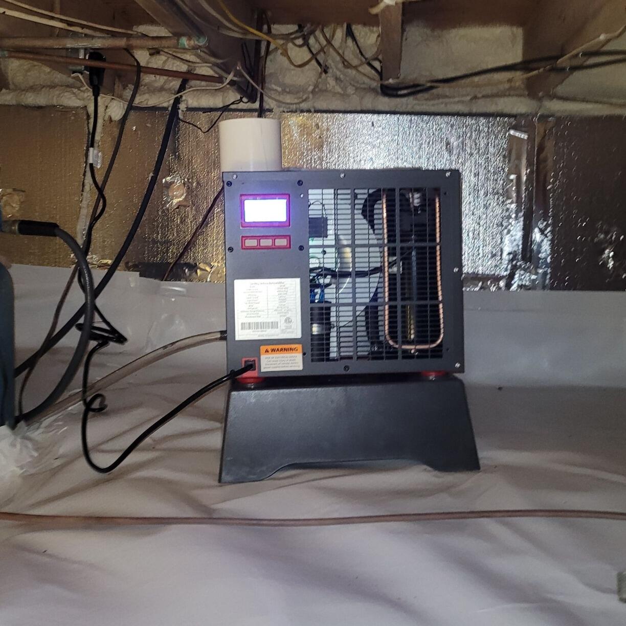 After Our team completed a comprehensive crawl space repair by installing the CleanSpace® Vapor Barrier System across the floor and foundation walls to control ground moisture and vapor migration. The rim joist was sealed with RimTight spray foam insulation to reduce air leakage and energy loss. We stabilized the sagging floor system using the SmartJack® Structural Support System to provide permanent load-bearing support, and installed a Sedona SaniDry™ Dehumidification System to maintain controlled humidity levels year-round.