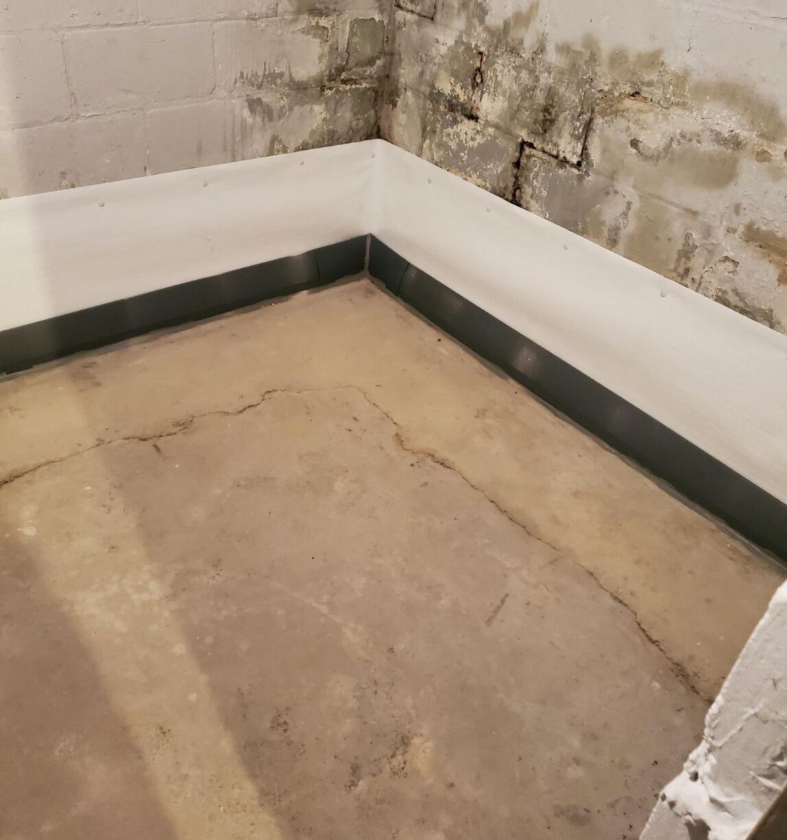 In a Chilton basement, the homeowner was dealing with recurring water seepage along the cove joint where the floor and wall meet. The existing concrete floor made it impractical to install a traditional perimeter drain, and frequent sump pump cycling left standing water after heavy
