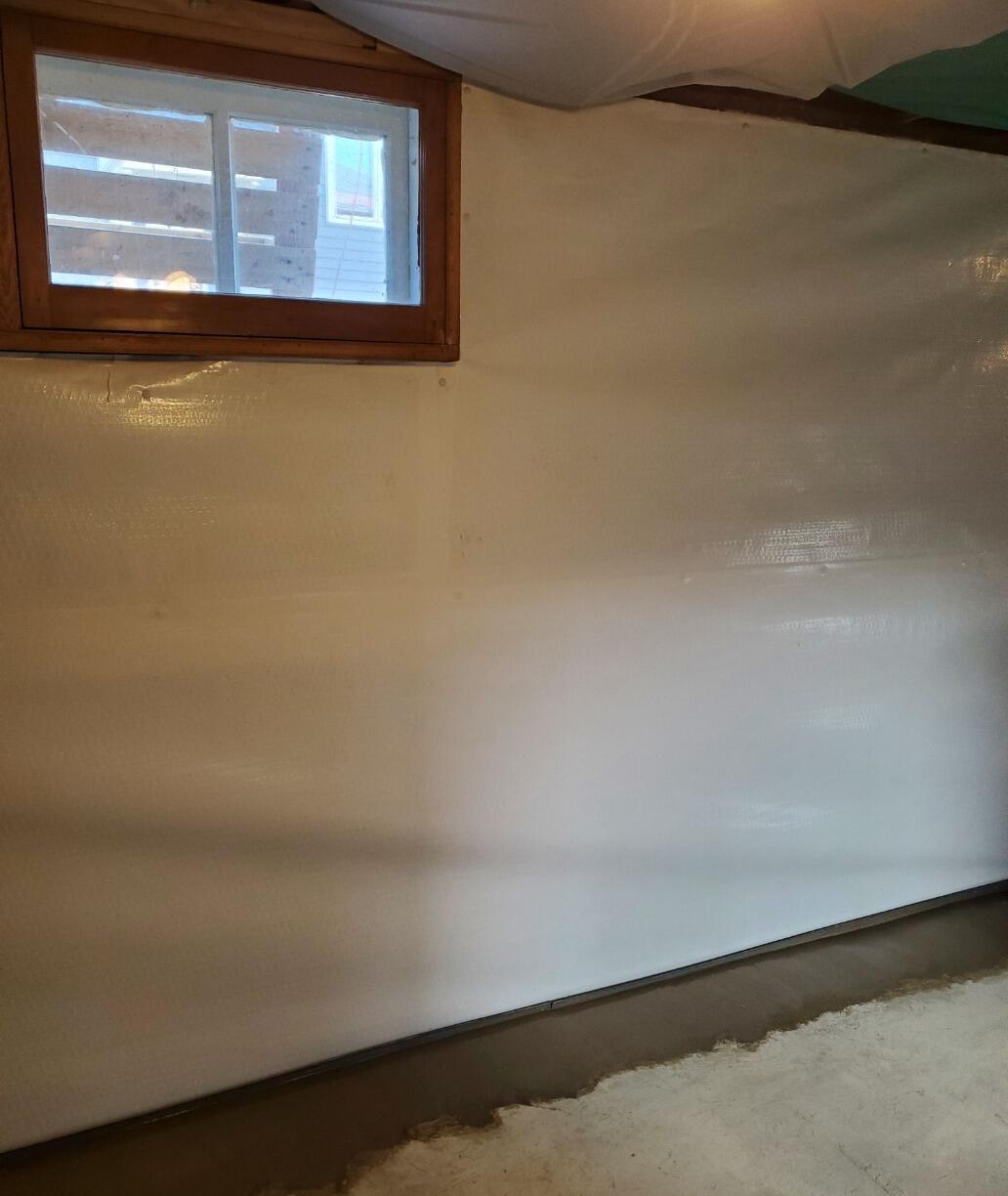 Sure-Dry installed a complete basement waterproofing system, starting with the WaterGuard® interior drainage system to capture groundwater at the footing and direct it to a new UltraSump® battery backup sump pump for dependable water removal during power outages and heavy storms. To address wall moisture and vapor penetration, CleanSpace® wall vapor barrier was installed, creating a sealed, moisture-resistant surface along the foundation walls.