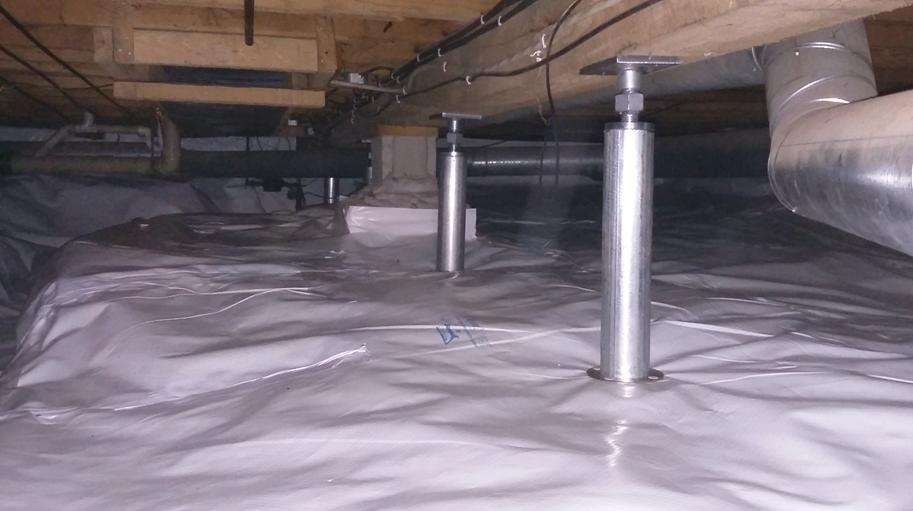 After: We expertly addressed these concerns by in installing our SmartJack System. As shown in the after photo, the galvanized steel columns now stabilize the crawl space beams. This provides a secure and enduring solution, lifting the floors back to their original elevation while enhancing stability and eliminating floor bounce.