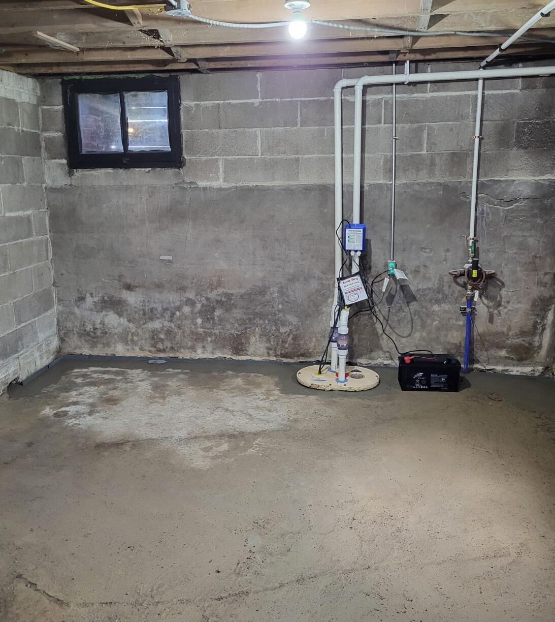 Wet Basement Waterproofed with Upgraded Sump Pump & WaterGuard Drainage System in Cecil, WI