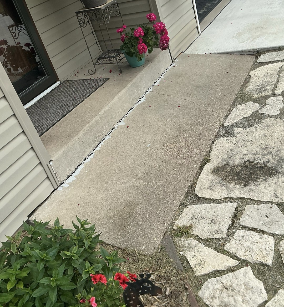 Before, our Pickett, WI homeowner faced a front door patio sagging away from the house, posing a risk and detracting curb appeal. As you can see in the photo, we brought stability and beauty back with PolyLevel and NexusPro solutions, lifting the concrete to its rightful position and sealing cracks for a seamless finish. Notice the transformation - a safer, more inviting entryway that speaks volumes of our commitment to lasting solutions and unparalleled customer experience.