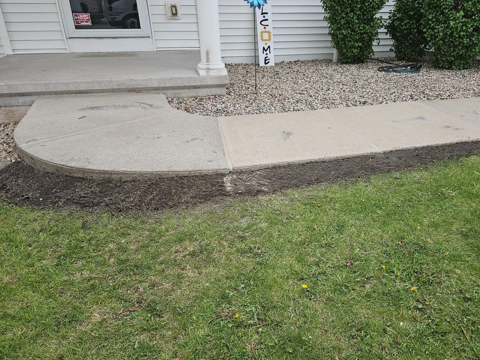 In Fremont, WI, this homeowner noticed their front sidewalk had started to sink and lean away from both the front steps and the driveway. Not only was it becoming a trip hazard, but it also created an awkward and unsafe transition into the home. On top of that, a visible crack had formed along the walkway, making the concrete look worn and uneven.