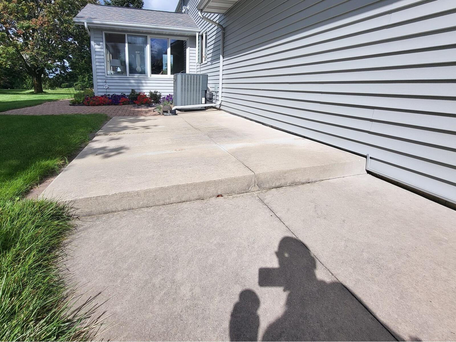 In Greenville, WI, a homeowner was struggling with a large concrete driveway and adjoining walkway that had begun to sink and settle unevenly. Over time, the slabs had shifted several inches, creating: