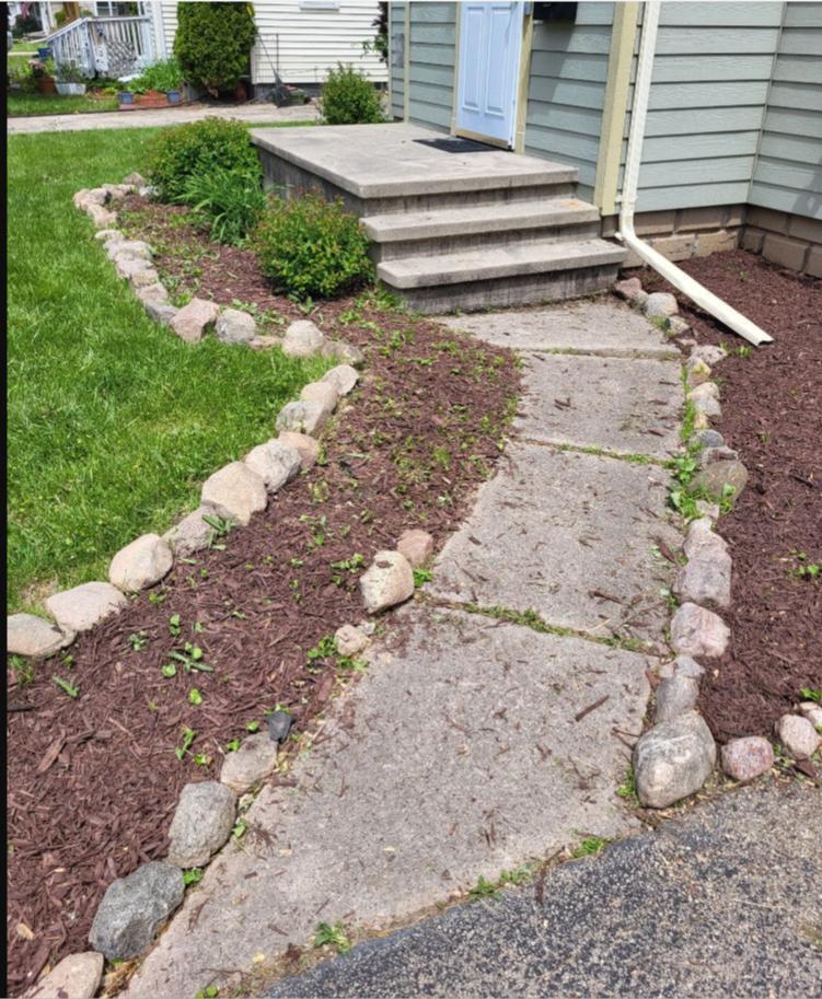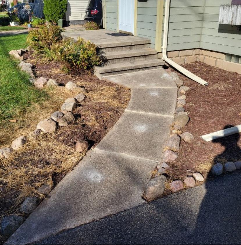 The homeowner in Neenah was dealing with a sunken sidewalk leading to their front door. Not only did the uneven slabs create a serious tripping hazard, but the large step up to the front stoop made everyday use difficult—especially during icy Wisconsin winters. Cracks and gaps between the slabs also allowed weeds to grow, making the entryway look neglected.