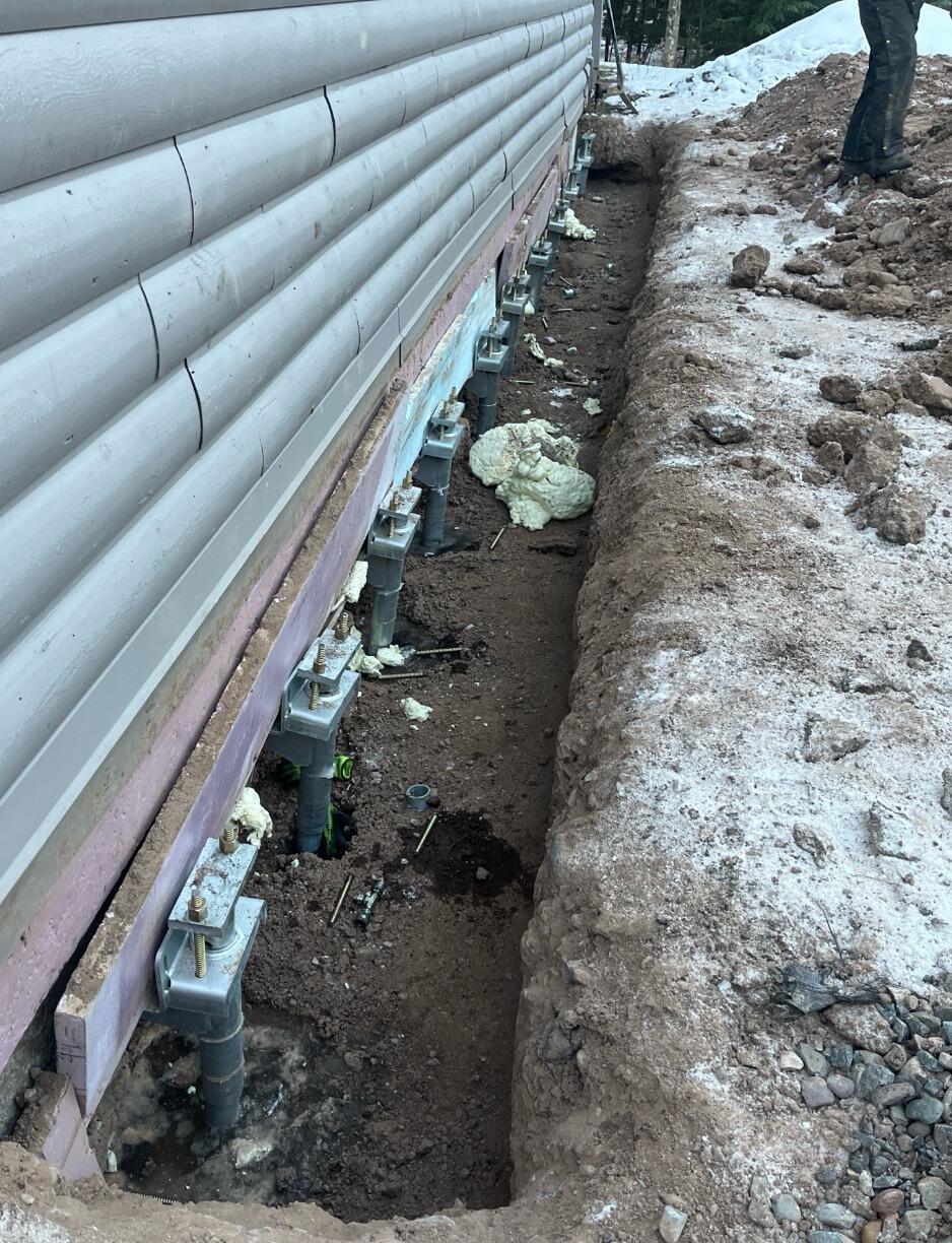 We installed SmartJacks® adjustable steel supports on engineered footings throughout the basement and the crawl space, added a supplemental steel beam where needed, and pre-loaded the jacks to restore proper bearing. Each jack is adjustable, allowing fine-tuning over time as the structure stabilizes.