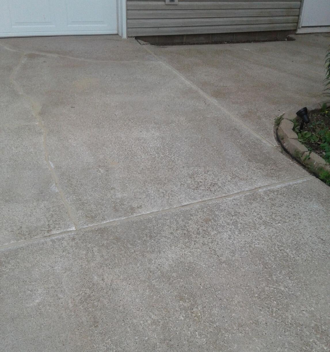 A homeowner in Brussels noticed their concrete driveway apron and front patio had begun to settle and separate from the foundation, creating uneven surfaces and gaps that collected water. The sinking concrete not only affected curb appeal but also caused tripping hazards and drainage issues near the home.