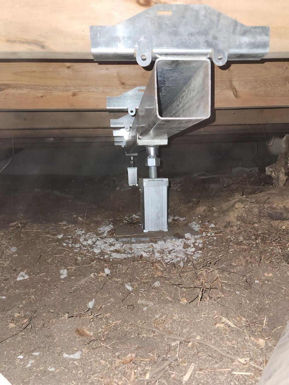 To stabilize and support the structure, our team installed our SmartJacks Support System throughout the crawl space. The adjustable system provided immediate reinforcement to the existing girders and a reliable path for future tightening if seasonal movement occurs.
