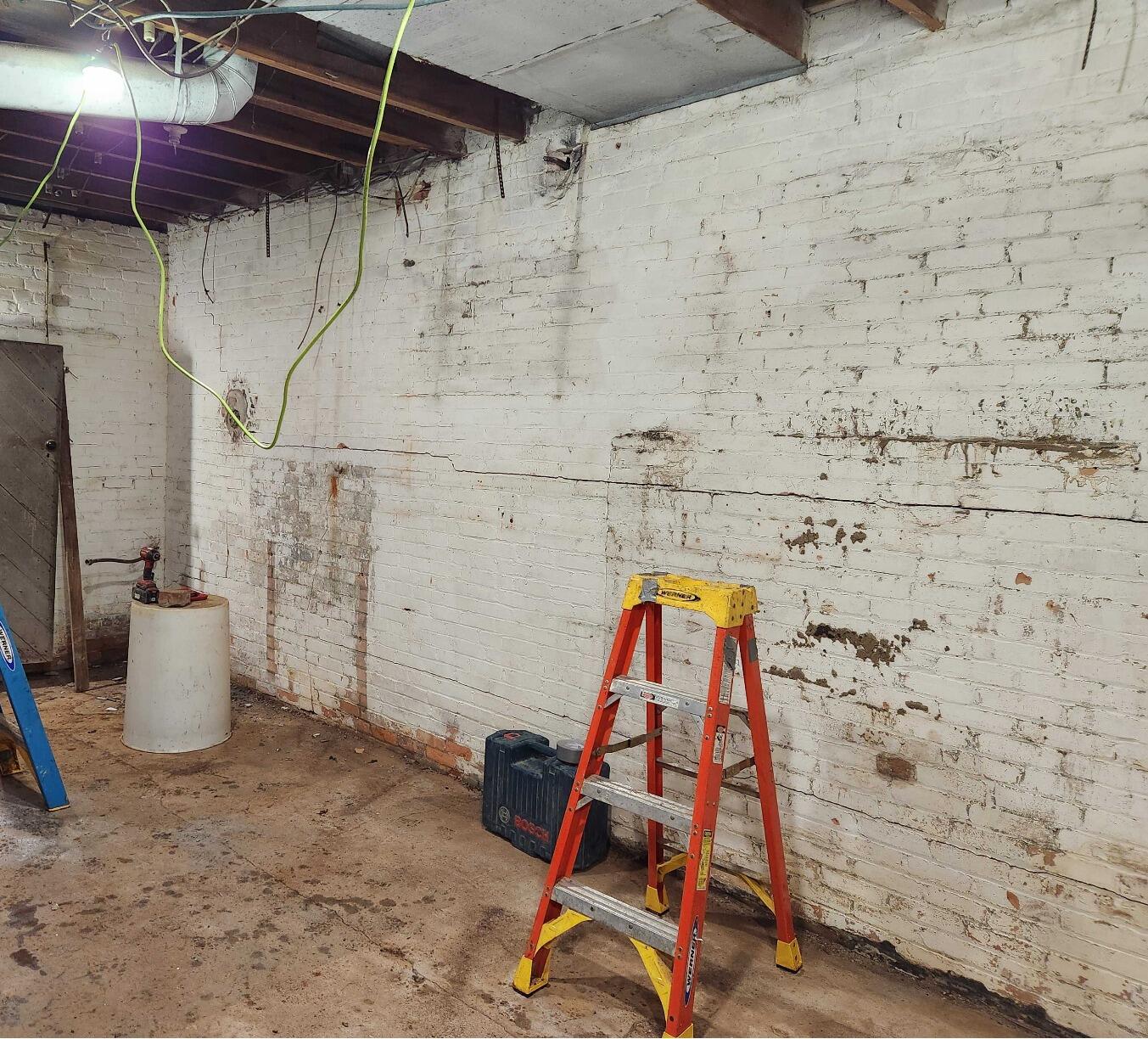 In De Pere, WI, a historic lock tender’s home—an important part of the community’s early canal system—was showing signs of severe foundation distress. The century-old stone and block basement walls had begun to bow inward and shift under years of soil pressure and water intrusion. Cracking along mortar joints and wall movement raised concerns about long-term stability and the potential loss of an irreplaceable local landmark.
