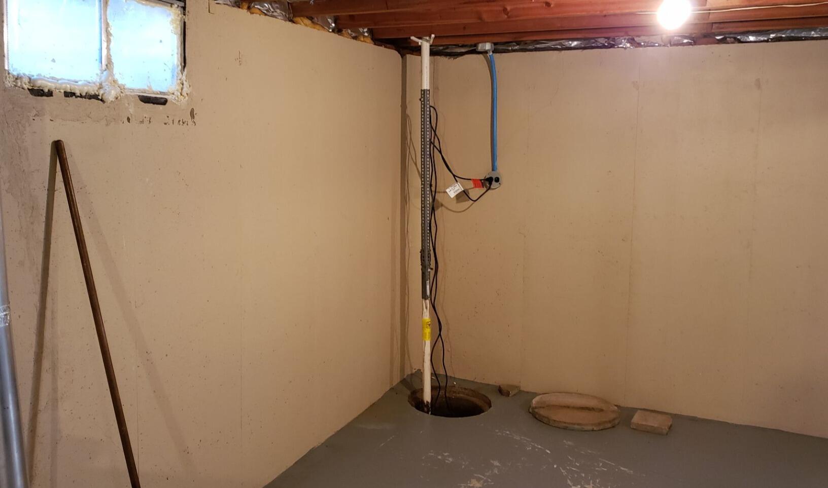 A homeowner in Omro had recurring water around the sump, musty odors, and damp, unfinished basement walls. Winter made things worse with worries about the discharge line freezing and backing water into the home.